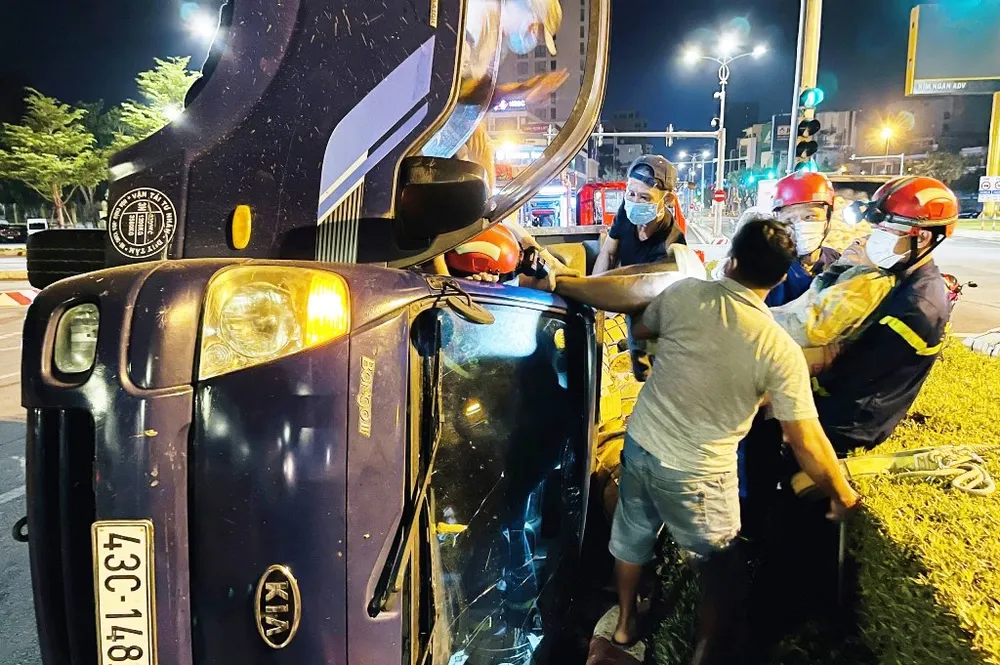 Rạng sáng 4-10, xe tải loại 1,4 tấn do nam tài xế NNH (41 tuổi, ngụ quận Cẩm Lệ, Đà Nẵng) cầm lái chạy trên đường 2-9. Khi ôm cua để lên cầu Rồng (quận Hải Châu) thì bị lật.
