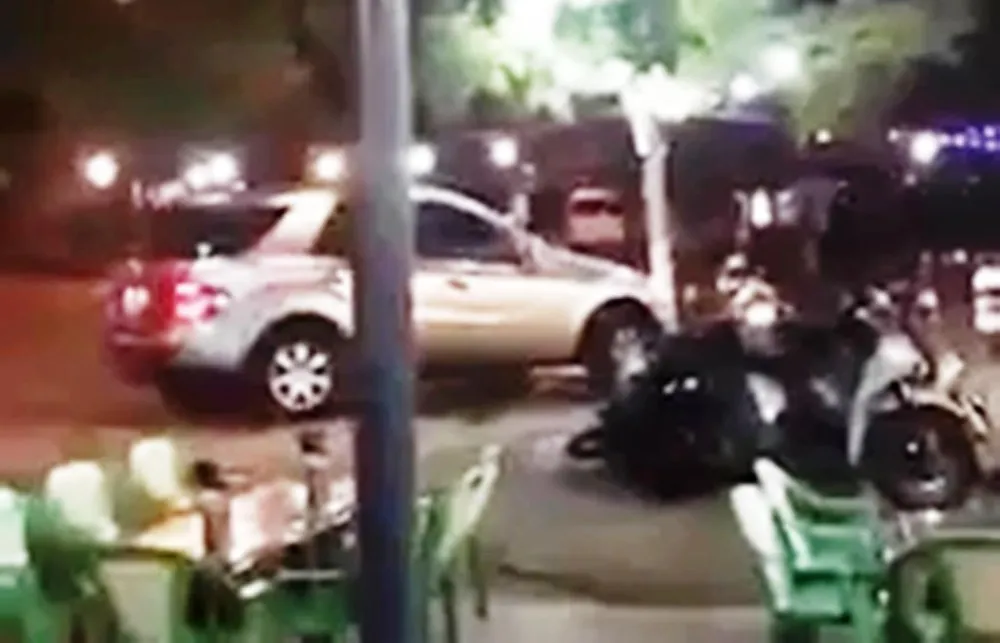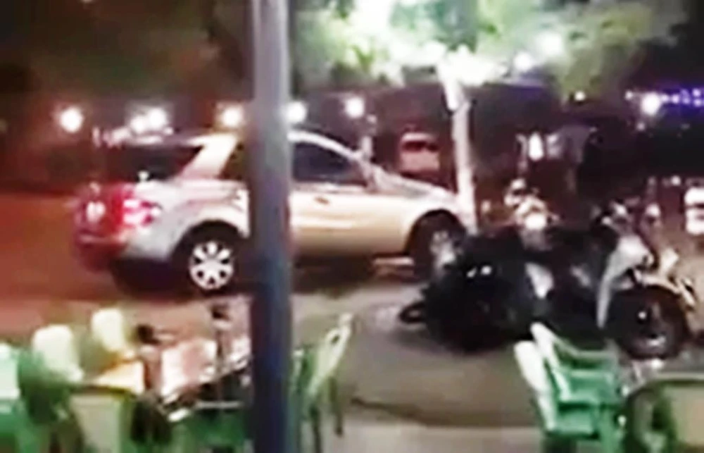 Ô tô tông xe máy trong quán nhậu rồi lùi ra chạy tiếp.