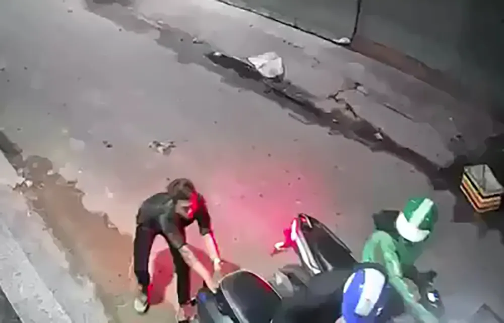 Anh T. chống cự, kéo lại xe máy của mình nhưng không được. Toàn bộ diễn biến đã được camera an ninh gần đó ghi lại.