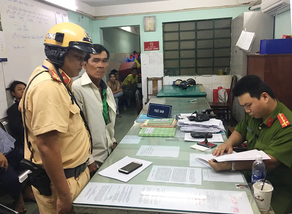 Tại trụ sở công an, người này khai tên Mai Văn Sơn (55 tuổi, ngụ Tiền Giang), hành nghề xe ôm công nghệ cao (Grabbike).