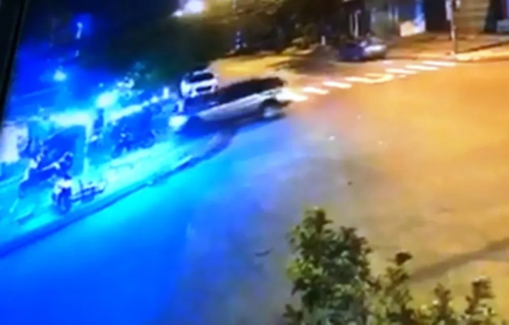 Ô tô (bên trái ảnh) đang lao vào quán nhậu. Ảnh: Cắt từ camera