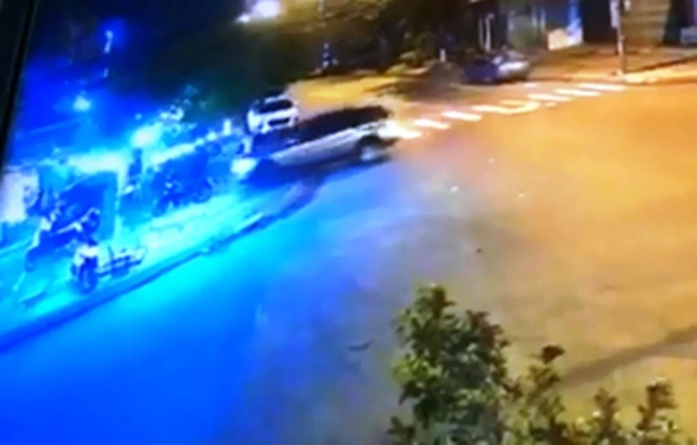 Ô tô suýt tông xe máy khi chạy vòng tròn. Ảnh: Cắt từ camera