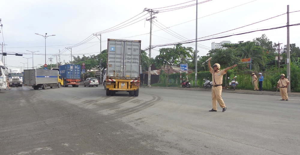 Tại ngã ba vành đai 2 (tên mới Võ Chí Công) vào Khu công nghiệp Cát Lái, xe từ trong Khu công nghiệp đâm ngang ra làm cho tình hình giao thông thêm rối loạn.