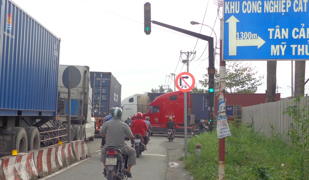 Trên đường Nguyễn Thị Định, dòng xe xuống cảng Cát Lái bị giao cắt, xung đột với dòng xe từ trong khu kho xăng dầu Petrolimex đổ ra làm cho tình hình lưu thông trên đường Nguyễn Thị Định rối, phức tạp.