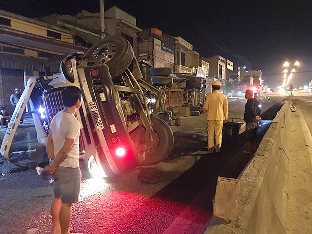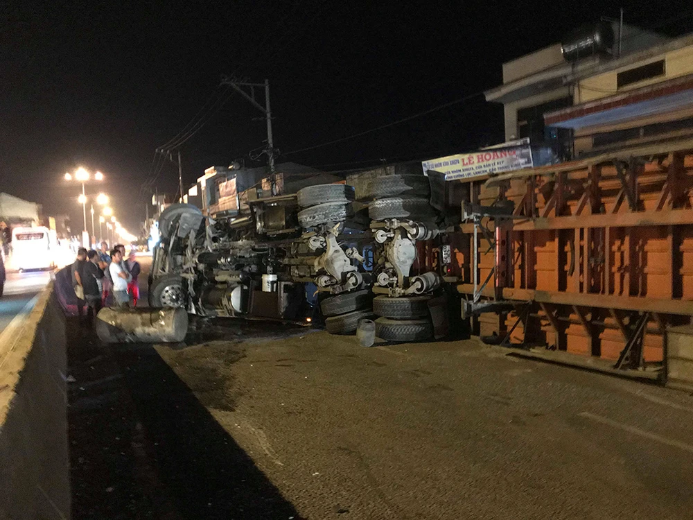 Theo thông tin ban đầu, vụ tai nạn xảy ra vào khoảng 23 giờ ngày 20-1 trên quốc lộ 1A. Thời điểm trên, xe đầu kéo mang BKS 43C-031.32 đang lưu thông theo hướng Bắc-Nam, khi đến đoạn trước số nhà 800, đường Phạm Văn Đồng (thị trấn Núi Thành, huyện Núi Thành, Quảng Nam) thì đâm vào dải phân cách ở giữa đường. Cú đâm mạnh khiến chiếc xe chao đảo, nổ lốp và lao đi một đoạn và lật ngang đường.