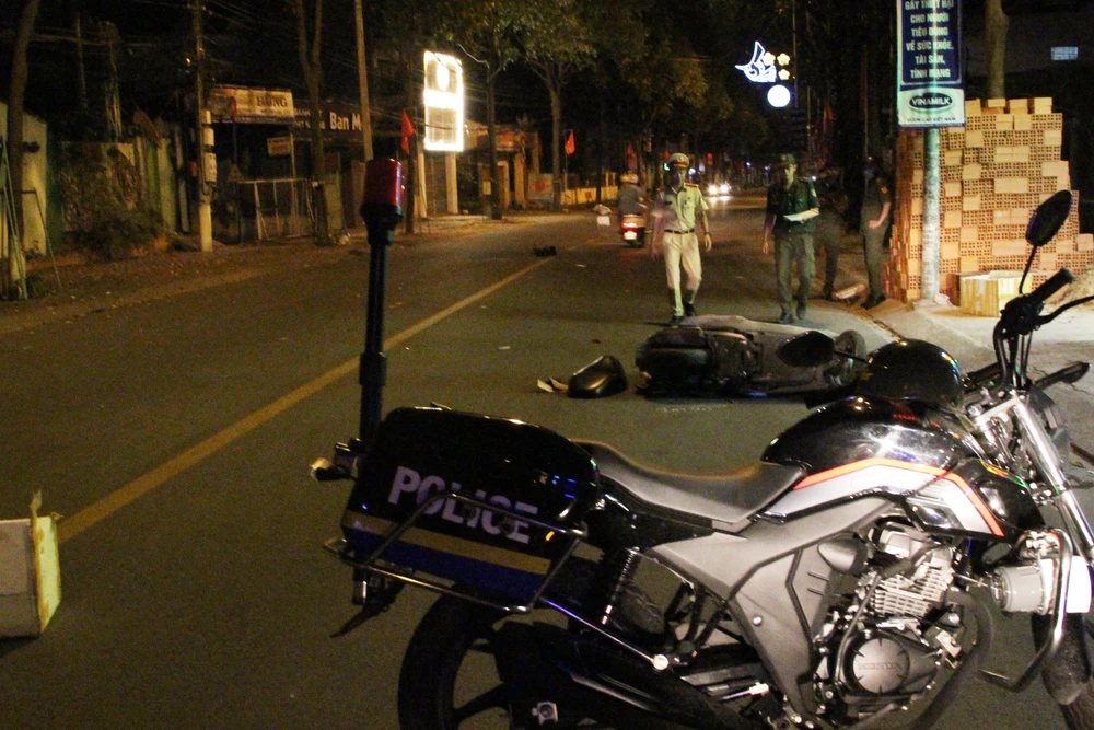 Lực lượng công an khám nghiệm hiện trường, điều tra nguyên nhân vụ tai nạn. Ảnh: LÊ ÁNH