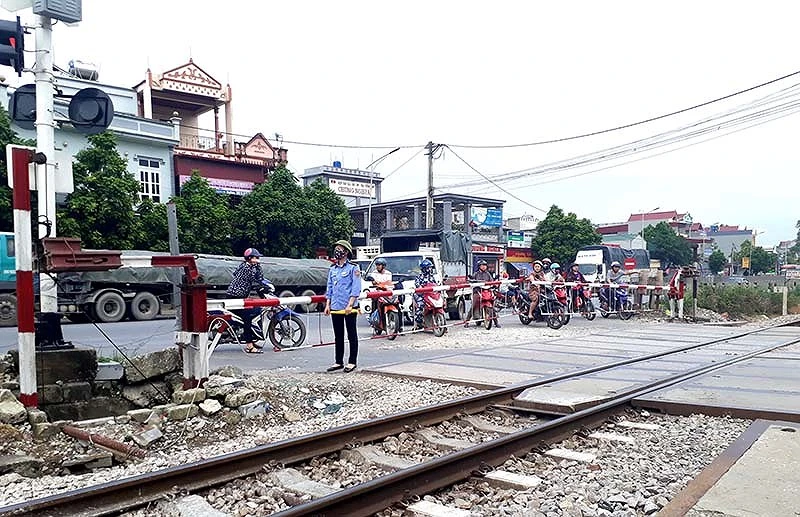 Gác chắn đường sắt đã được sửa lại sau vụ tai nạn giao thông hy hữu giao nhau giữa QL1A và QL217 đoạn qua huyện Hà Trung, Thanh Hóa.