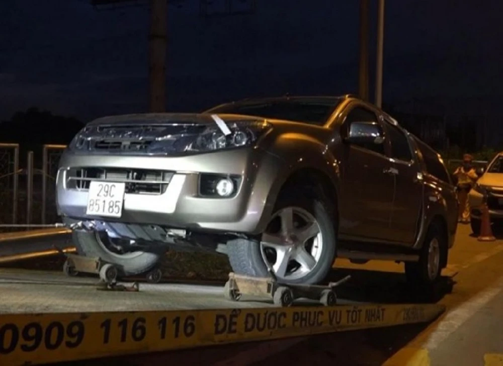 Khoảng 2 giờ 30, khi tuần tra lưu động đến Km188+300, đoạn qua địa bàn xã Liên Ninh (Thanh Trì, Hà Nội), CSGT phát hiện chiếc xe bán tải mang BKS 29C-851.85 vi phạm dừng đỗ xe trên cao tốc.