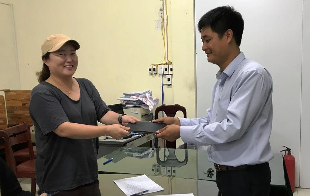 Sau khi tài xế thông báo nữ du khách mới phát hiện mình đã mất ví và cùng thông dịch viên đến trụ sở hãng taxi trên để nhận lại.