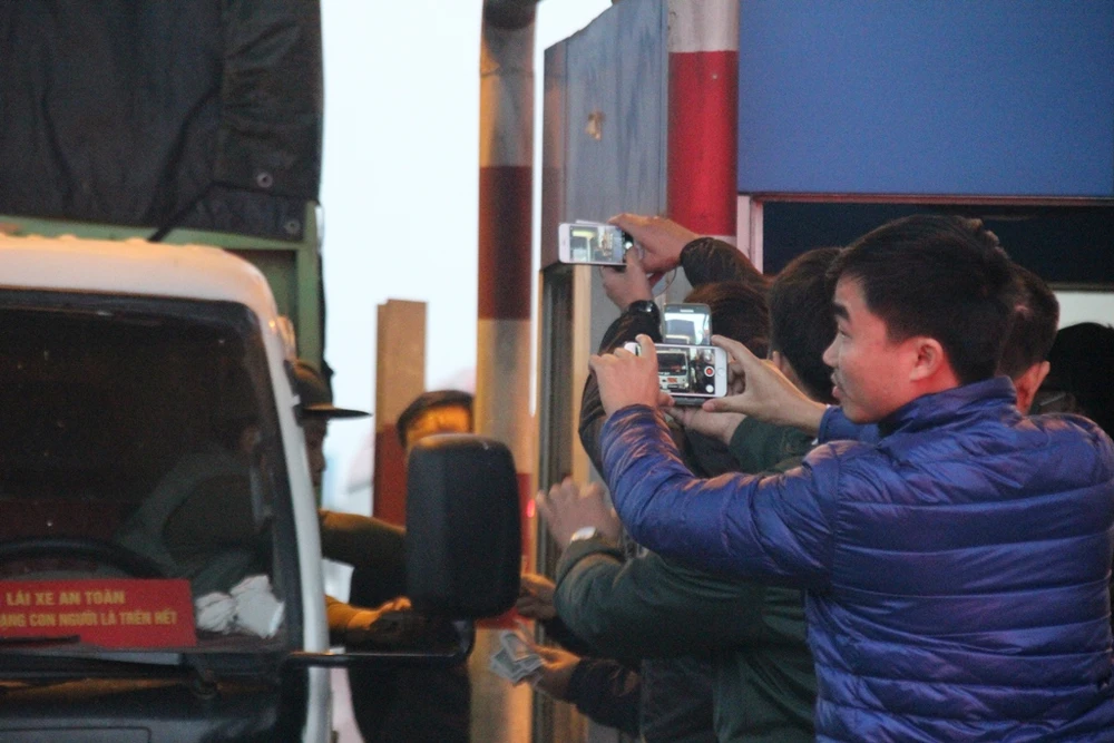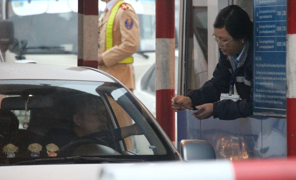 Nhiều phương tiện di chuyển theo hướng Hải Phòng - Hà Nội bị kẹt do tài xế trả tiền lẻ.