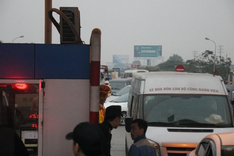 Trạm BOT quốc lộ 5 mở cửa cho xe máy đi vào khu vực trạm để giảm ùn tắc.