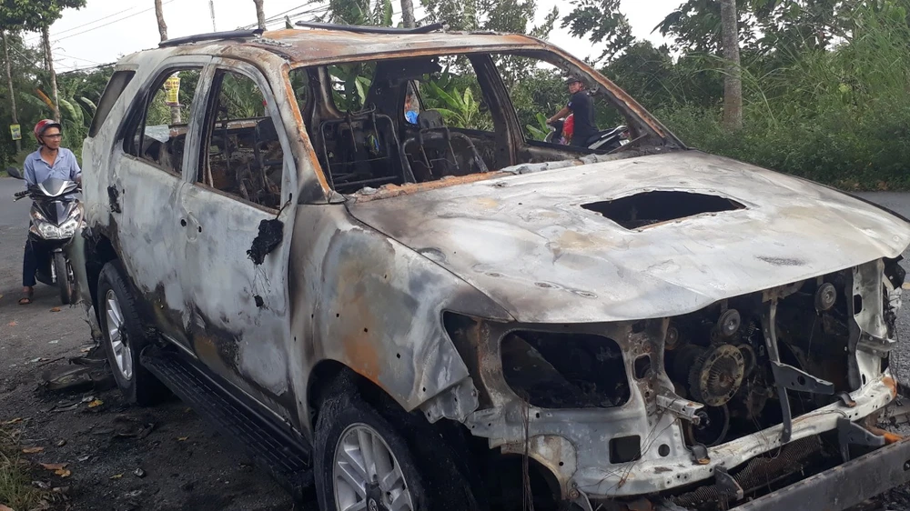 Ngày 25-10, một chiếc ô tô bảy chỗ đi trên đường tỉnh ĐT.848 thì bất ngờ bốc cháy dữ dội.