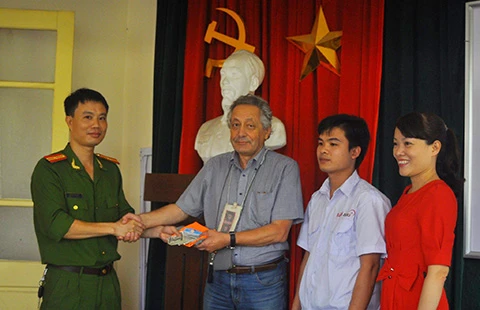 Ông Vlassopoulos được nhận lại số tài sản từ Công an phường Cầu Diễn. Ảnh: PHI HÙNG