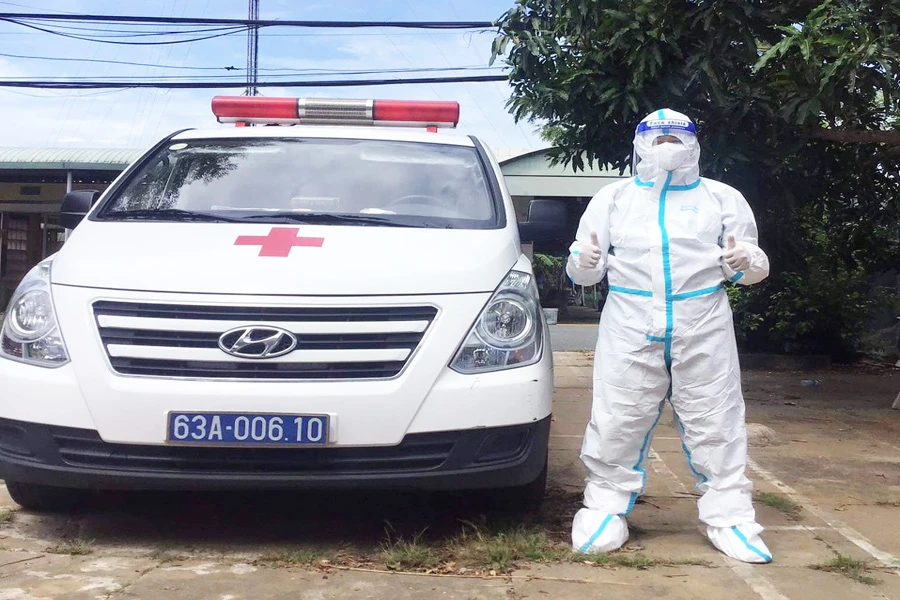 Gần hai tháng nay, khi dịch bệnh COVID-19 bùng phát, công ty ở TP.HCM tạm ngưng hoạt động, anh Lê Thành Tâm (28 tuổi, ngụ xã Phú Quý, thị xã Cai Lậy, tỉnh Tiền Giang) là tài xế lái xe cho công ty cũng phải tạm ngưng công việc và về lại quê nhà ở xã Phú Quý (thị xã Cai Lậy, tỉnh Tiền Giang). Về quê tránh dịch, anh Tâm liền đăng ký tham gia tình nguyện lái xe cứu thương chở các trường hợp F0 nặng đến bệnh viện và hỗ trợ tuyến đầu chống dịch tại quê nhà.