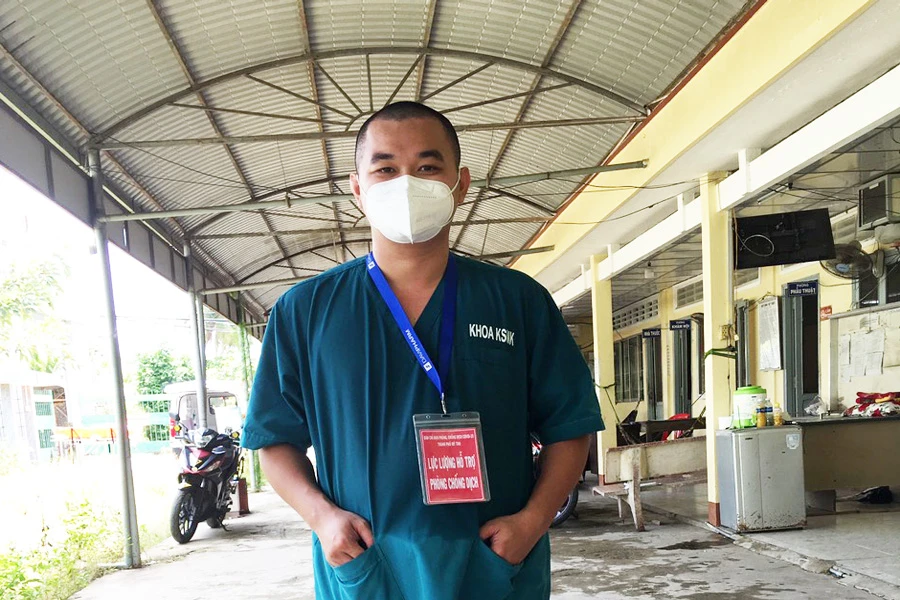 Anh Lê Thành Tâm luôn túc trực tại Bệnh viện dã chiến số 1. Ảnh: ĐH