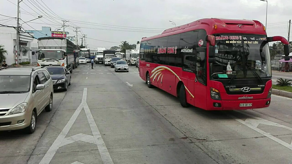Các tài xế dừng xe phản ứng khiến giao thông tại BOT Cần Thơ-Phụng Hiệp ùn tắc nhẹ.