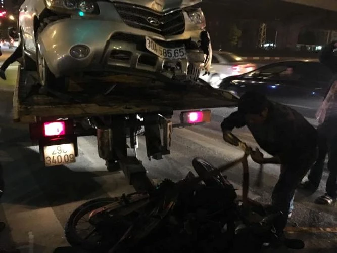 Theo các nhân chứng, chiếc ô tô hiệu Satafe BS 30A-585.65 sau khi va chạm với một chiếc Hyundai biển số 30Z-8829 đã cố ý bỏ chạy.