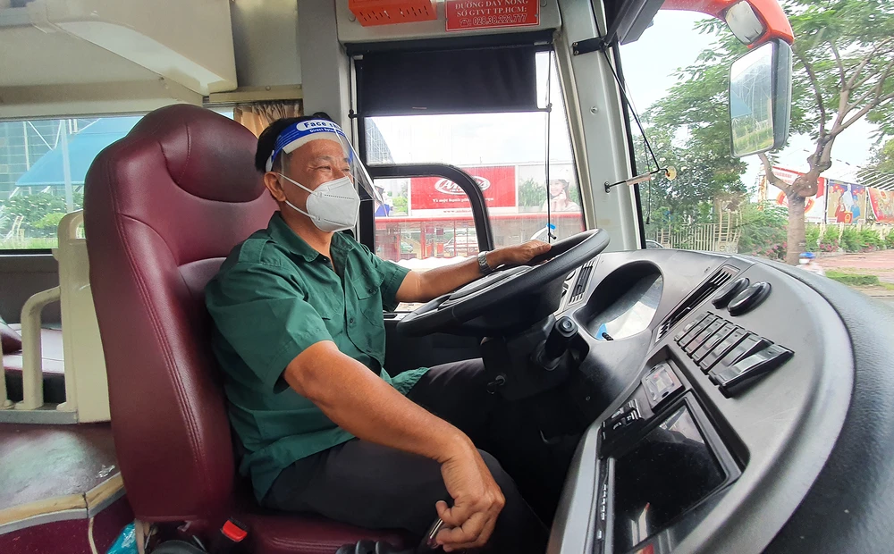 Trong thời gian dịch bệnh, ông Hùng từ An Giang lên TP.HCM tham gia tình nguyện đưa bệnh nhân xuất viện về nhà. Ảnh: NGUYỄN YÊN