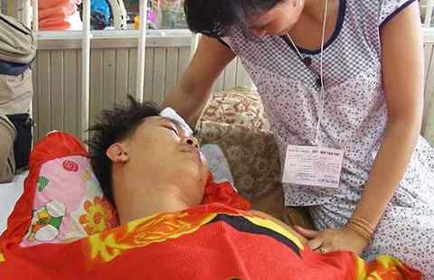Theo các bác sĩ, bệnh anh Chiển phải điều trị nhiều tháng. Anh là trụ cột gia đình giờ nằm một chỗ, vợ bỏ công ăn chuyện làm lo chăm sóc chồng, cuộc sống gia đình bỗng chốc rơi vào cảnh khó. “May ở đây trưa chiều có người đến phát cơm từ thiện, cũng đỡ được phần nào” - người vợ cho biết.