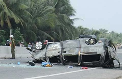 Người vợ kể tiếp: “Tôi nghe những người đưa chồng tôi đi cấp cứu kể lại người dân đã lôi chồng tôi và những người trong xe ra. Vài phút sau xe cứu thương bốc cháy ngùn ngụt. Chồng tôi được đưa đến BV Chợ Rẫy, bác sĩ nói ảnh bị chấn thương sọ não, chấn thương cột sống. Còn những người khác trong xe không biết ở đâu, giờ ra sao”.