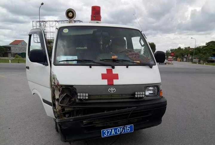 Vào thời điểm trên, ô tô tải do anh Nguyễn Xuân Lý (24 tuổi, trú huyện Quỳnh Lưu, Nghệ An) lái từ quốc lộ 1A tránh TP Vinh vào ngã tư giao nhau với quốc lộ 46. Lúc này, xe cứu thương biển xanh 37A-0615 điều khiển tông vào sau xe tải.