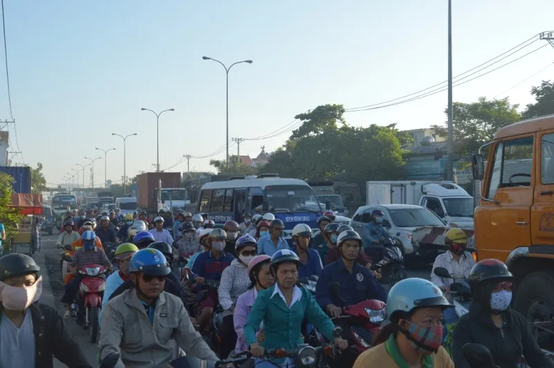 Vụ va chạm đã khiến quốc lộ 1A bị ùn ứ nghiêm trọng (ảnh A.S)