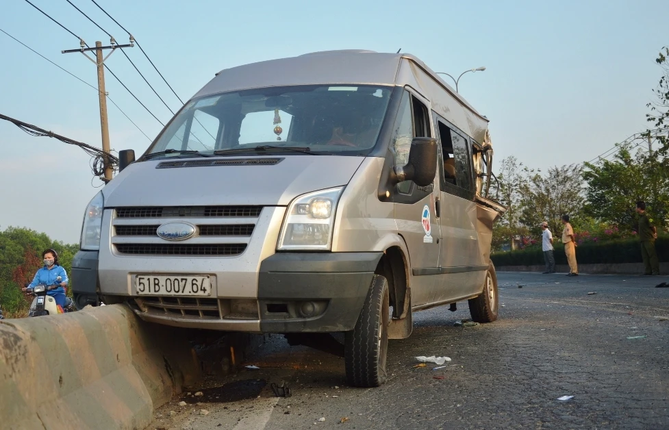 Anh Hiền cho biết khoảng 3 giờ ngày 11-3, anh cầm lái xe khách loại 16 chỗ biển số 51B – 007.64 đi từ Tây Ninh về Sài Gòn. Lúc chạy trên quốc lộ 22 đoạn cách cầu An Hạ khoảng 700 mét thuộc địa phận xã Xuân Thới Nhì, huyện Hóc Môn (TP.HCM) thì có tiếng nổ lớn vang lên từ phía trước, bánh xe phát nổ phải tấp vào vệ đường sửa chữa. “Khi ô tô gặp sự cố, tôi cùng phụ xe là anh Nguyễn Minh Hoàng (42 tuổi, quê Vĩnh Long) đang loay hoay kiểm tra xem bánh trước xe ô tô bị nổ thì bất ngờ chiếc container từ phía sau lao tới đâm mạnh vào bên trái”, anh Hiền nhớ lại.