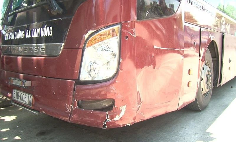 45 phút sau, xe khách 51B-005.14 do tài xế Trần Văn Mạo (32 tuổi, trú Nghệ An) điều khiển đã tông vào ô tô vừa bị tai nạn trước đó, rất may đã không có thiệt hại về người.