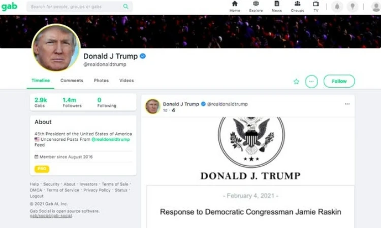 Cựu Tổng thống Mỹ đã tham gia nền tảng Gab kể từ tháng 8-2016, ngay trước khi ông đắc cử. Tuy nhiên, ông Trump chỉ quan tâm trở lại đối với nền tảng này sau khi bị các nền tảng mạng xã hội lớn đình chỉ vô thời hạn các tài khoản của mình sau vụ bạo loạn ở Điện Capitol hồi 6/1.
