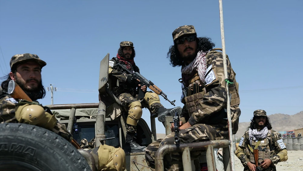 Các tay súng Taliban canh gác tại sân bay Kabul. Ảnh: SPUTNIK