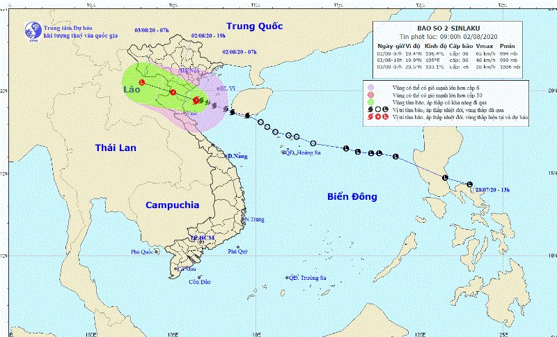 Vào 7h sáng nay 2-8, tâm bão số 2 đã vào đến vùng biển các tỉnh từ Thái Bình đến Nghệ An. Cường độ bão mạnh cấp 8, giật cấp 10. Do ảnh hưởng của bão số 2, ở Bạch Long Vĩ, Hòn Dáu đã có gió mạnh cấp 8, giật cấp 9-10.
