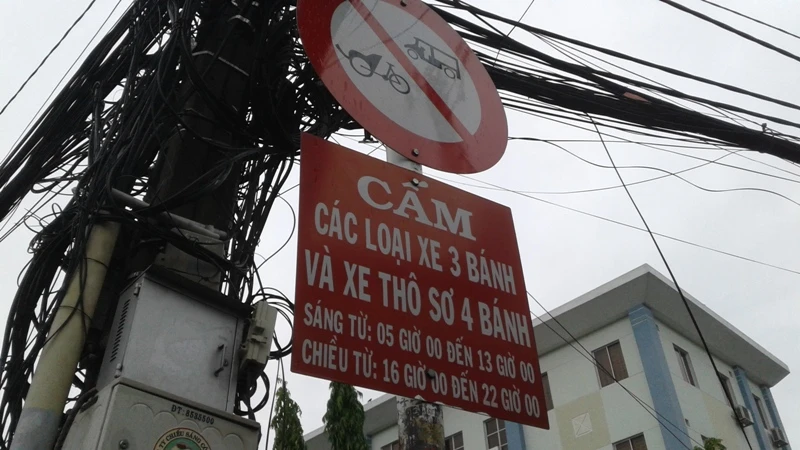 Ngay đầu đường là hai tấm biển cấm, chỉ không có tên đường thôi. Ảnh: NGUYỄN TRÀ
