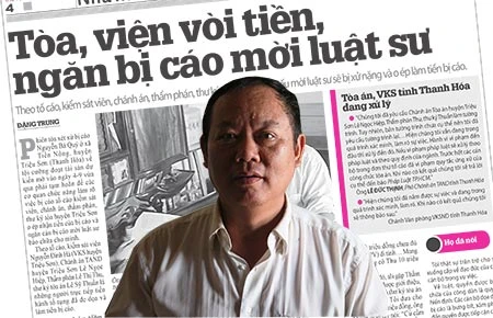 Liên quan ông Nguyễn Bá Quý ở xã Tiến Nông, huyện Triệu Sơn (Thanh Hóa) tố cáo tòa án, VKSND huyện Triệu Sơn vòi vĩnh, ngăn bị cáo mời luật sư, ngày 17-9, ông Nguyễn Thanh Bộ, Chánh án TAND tỉnh Thanh Hóa, cho biết: “Chúng tôi đã có quyết định tạm đình chỉ công tác ba tháng đối với chánh án, thẩm phán, thư ký TAND huyện Triệu Sơn để xem xét, xác minh các thông tin mà ông Quý tố cáo và báo đã phản ánh và sẽ xử lý nghiêm”.
