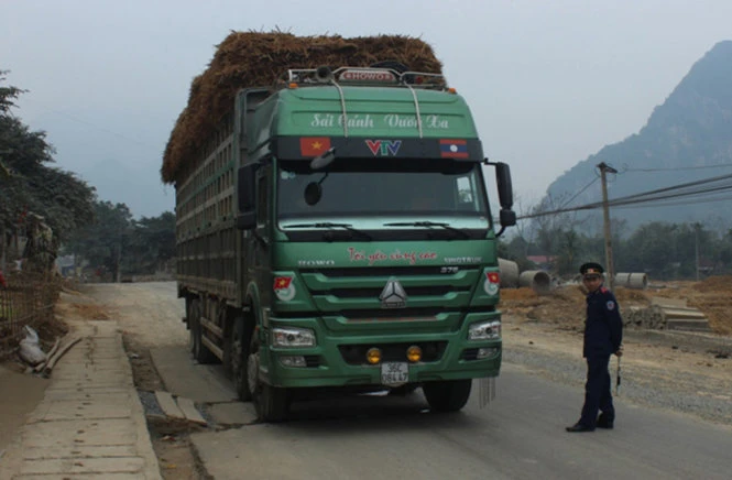 Chiếc xe tải bị ông Mai Xuân Liêm - giám đốc Sở GTVT tỉnh Thanh Hóa phát hiện, chỉ đạo thanh tra giao thông bắt giữ chiều 17-2 - Ảnh: TTO