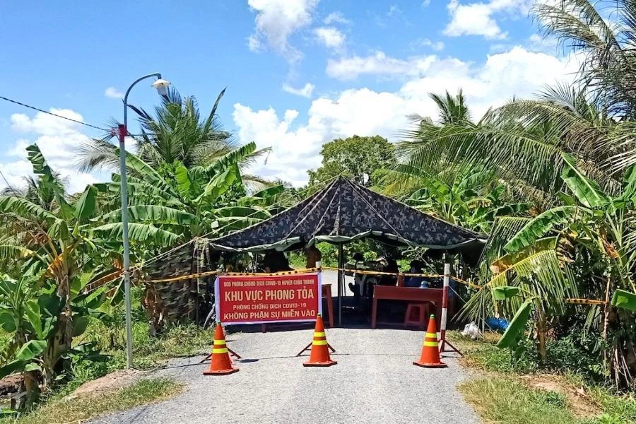 Khu vực thiết lập cách ly y tế do có ca nhiễm COVID-19 tại Trà Vinh. Ảnh: HD
