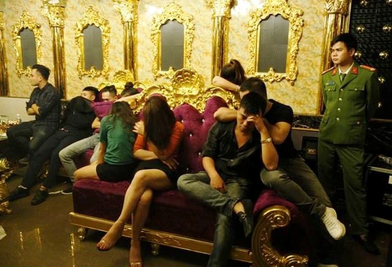 Nhóm "chơi" ma túy trong phòng VIP8 Karaoke bị công an bắt quả tang.