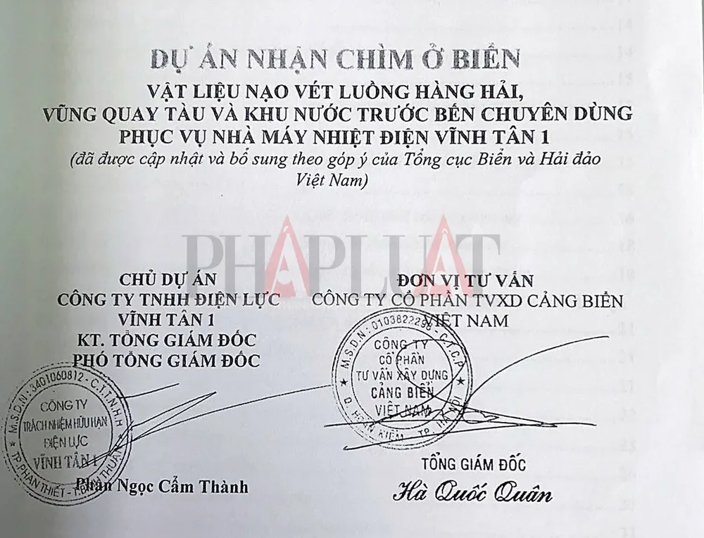 Theo thông tin chúng tôi thu thập được, cả hai hồ sơ dự án (một ký vào tháng 2-2017 để trình các thành viên hội đồng thẩm định tại cuộc họp ngày 20-2 và một ký vào tháng 4-2017 để làm thủ tục cho Bộ TN&MT cấp phép nhận chìm) đều do ông Hà Quốc Quân ký tên đóng dấu với tư cách là tổng giám đốc đơn vị tư vấn, đều bị một số nhà khoa học phản ứng là không tham gia vào việc lập dự án này.