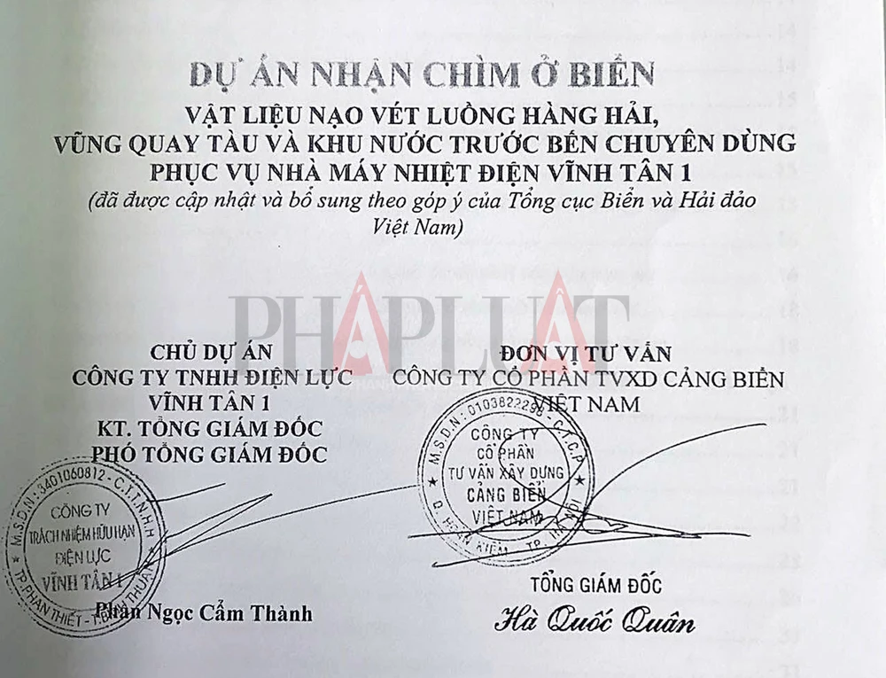 Trong một diễn biến liên quan, vào chiều qua (21-7), để làm rõ việc mạo danh một số nhà khoa học trong danh sách những người tham gia thực hiện “dự án nhận chìm ở biển vật liệu nạo vét luồng hàng hải, vũng quay tàu và khu nước trước bến chuyên dùng phục vụ Nhà máy nhiệt điện Vĩnh Tân 1, phóng viên Pháp Luật TP.HCM đã trực tiếp gặp và trao đổi với ông Hà Quốc Quân, Tổng Giám đốc Công ty CP tư vấn xây dựng cảng biển Việt Nam.