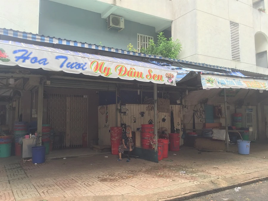 Các sạp bán hoa tại khu vực chợ hoa Đầm Sen đã tạm đóng cửa.