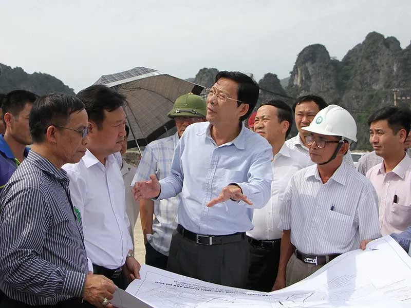 Ông Nguyễn Văn Đọc, Bí thư Tỉnh ủy Quảng Ninh (giữa), kiểm tra dự án đô thị Ao Tiên, huyện Vân Đồn. Ảnh: ĐỖ HOÀNG