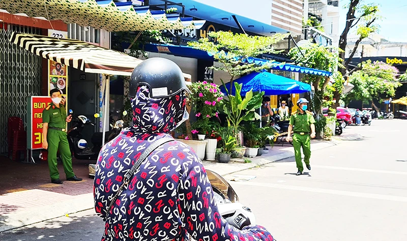 Lực lượng chức năng kiểm tra, xử lý một điểm ở TP Quy Nhơn mà người mắc COVID-19 đã đến. Ảnh: NO