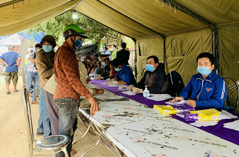 Một chốt kiểm soát y tế phòng chống dịch ở Bình Định. Ảnh: THANH MAI
