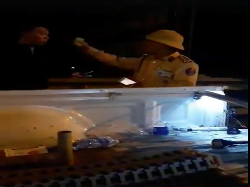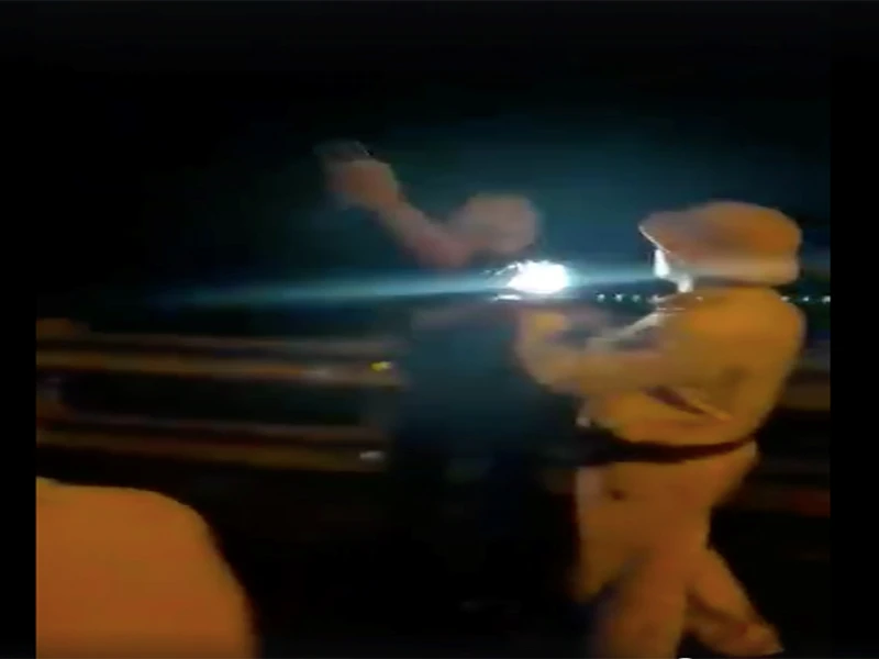 CSGT rọi đèn pin vào người dân. Ảnh cắt từ clip