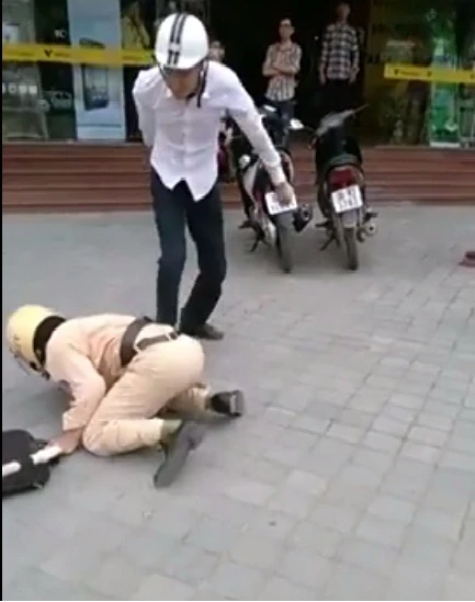 Trong quá trình kiểm tra đối tượng không chấp hành, đồng thời có hành vi chống trả lại người thi hành công vụ. Sau khoảng 15 phút giằng co, xô đẩy thì đối tượng càng hung hăng hơn lao tới tấn công CSGT, khiến chiến sĩ này gã xuống đường.