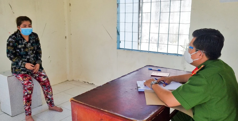 Trần Thị Hồng Oanh tại cơ quan công an. Ảnh: VĂN VŨ