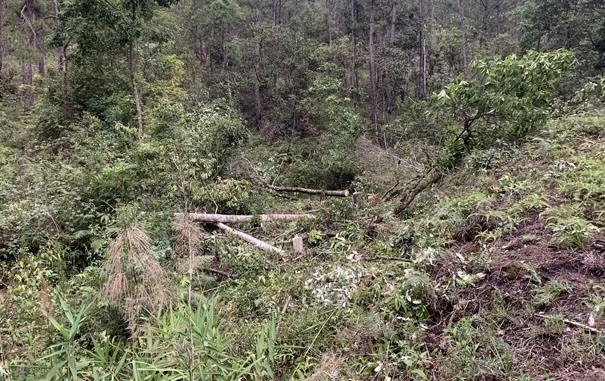 Hiện trường Tiểu khu 148A - rừng phòng hộ Tà Nung bị phá. Ảnh: VT