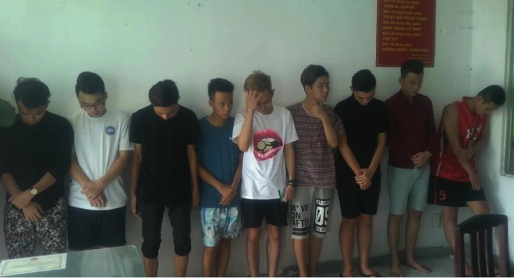 Công an quận 1 bắt giữ Đan và truy xét, bắt giữ tám người còn lại, thu giữ nhiều thanh sắt, gỗ, súng bắn đạn bi.