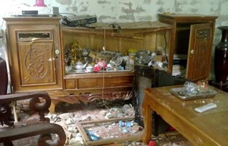Tài sản trong nhà cán bộ xã Bắc Sơn bị người dân quá khích đập phá. Ảnh: MN