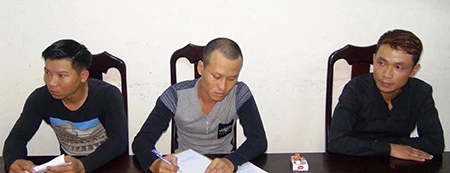 Công, Đức và Giang (từ trái qua) tại cơ quan công an (ảnh Bá Khánh)