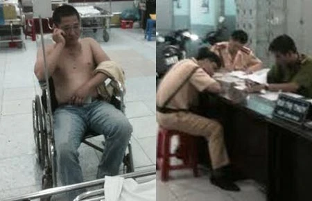 Lưu Vĩnh Toàn thời điểm tự vào bệnh viện cho rằng bị CSGT đánh. Tổ CSGT Công an quận Thủ Đức đang tường trình vụ việc tại công an phường Bình Thọ. Ảnh: CTV